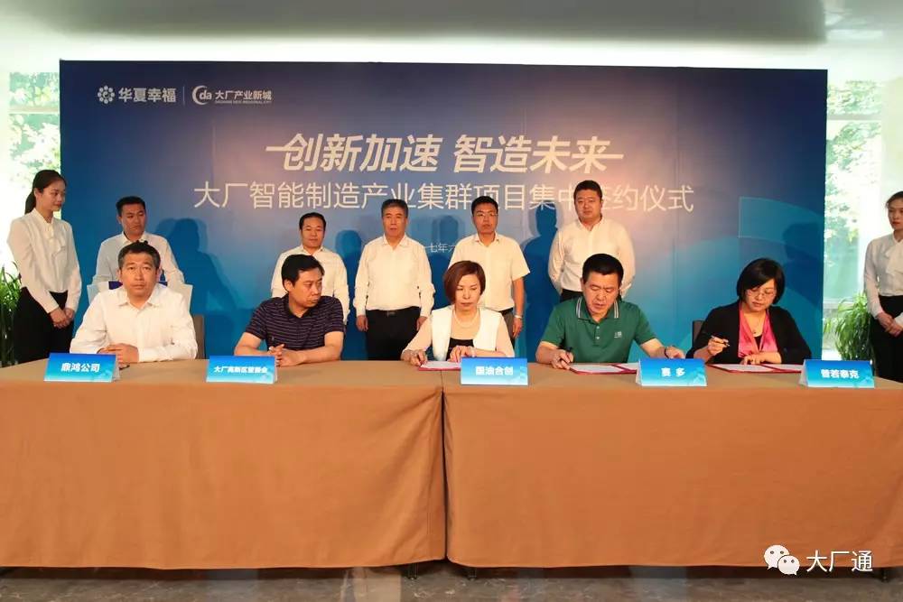6月9日电,“创新加速、智造未来”大厂智能制造产业集群项目集中签约仪式在河北大厂产业新城智能制造产业园举行。8家企业集中签约,落户大厂高新技术产业开发区。