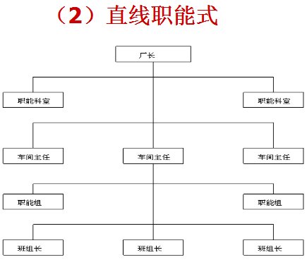 1、生产现场组织,是公司的最基层组织,其组织结构一般有三种,即直线式、职能式和直线职能式。