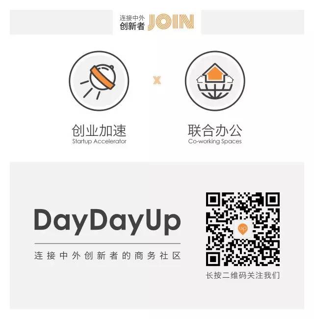 DayDayUp致力于连接中外创新者,以空间为载体,依托线上线下的社区,围绕工业4.0、智慧城市、智慧出行、医疗健康等重点产业,通过创业加速服务,来构建面向大企业、投资人、创业团队的国际创新生态系统。