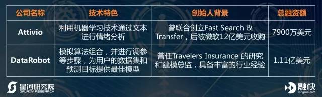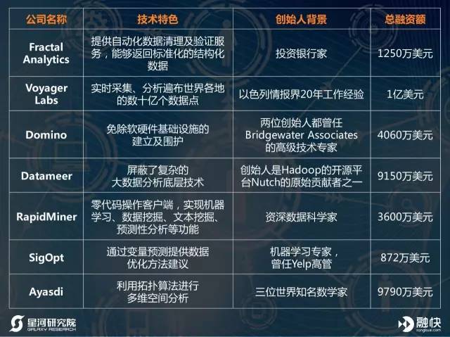 典型企业如Alteryx是一个提供一站式数据分析平台的初创公司,旨在让用户在同一个平台上完成数据输入、建模以及数据图形化等操作,将数据运算与精美的图像完美地嫁接在一起,并能够和SAS和R语言一样进行数据的统计和分析。