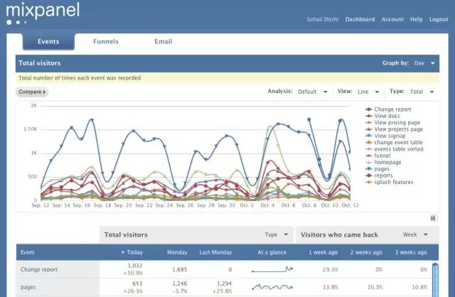 Mixpanel便是一家提供类似产品的公司,其让企业用户跟踪用户的使用习惯提供实时分析,其产品有用户动态分析(Trends)、行为漏斗模型(Funnels)、用户活跃度(Cohorts)及单用户行为分析(People)等几个模块,全面的覆盖了可能发生的用户行为与场景。