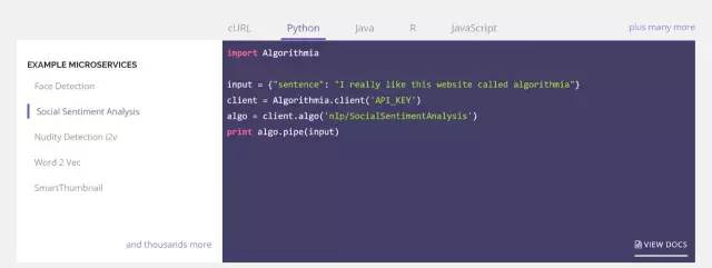 Algorithmia的平台上提供包括机器学习、语义分析、文本分析等通用性算法,一旦用户找到想用的算法,只需添加几行简单的算法查询代码到应用中,Algorithmia的服务器就会与应用连接,避免了开发者的重复劳动。