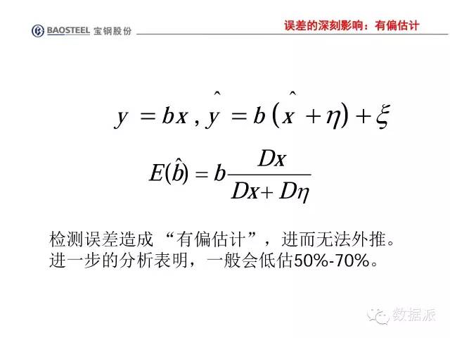 这会发生什么情况呢?我们假设有一个函数y=b*x。自变量误差很小时,用最小二乘法得出来E(b)=b。但是,如果自变量误差显著时,你得到的结果比b要小(我指的是绝对值)。这就意味着:误差最小的那个模型其实是不真实的;说的严重点,甚至可以说是错误的。