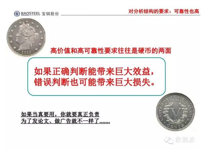 有人买了我们的钢,说我们的钢有问题,要我们赔100万。宝钢就说了,这不是我的问题。对方就说:可以把这块板子拆下来检验;但如果拆下来发现是你们的问题,就要赔1000万。后来,宝钢回家看相关的数据后,自信地说:你拆吧,肯定不是我们的问题。后来也证明了我们的判断。这就是数据的价值。没有数据,你怎么敢下这个结论?