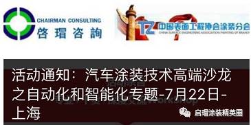 活动通知:汽车涂装技术高端沙龙之自动化和智能化专题-7月22日-上海