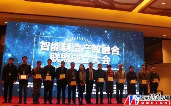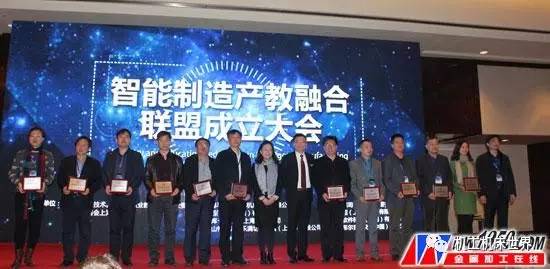 智能制造产教融合联盟理事长张利华对联盟成立的目的、性质、职能及主要活动做了详细的介绍:智能制造产教融合联盟由行业组织、装备制造业工业领域企业、加工制造企业及学校四类机构组成,是非盈利、非法人性质的开放型联合体。联盟以国家制造业升级战略为引导,围绕制造业典型行业(如航空航天,汽车制造,精密模具制造,IT等行业)由制造向智造的跨越式发展对高端机能型人才的迫切需求这一突出现状,中国职业技术教育学会职业教育装备专业委员会、全国机械职业教育产教合作促进与指导委员会、德国工商大会上海代表处(AHK)、高等教育出版社、机械工业出版社、德马吉森精机机床贸易有限公司、西门子(中国)有限公司、山特维克可乐满切削刀具(上海)有限公司、库卡机器人(上海)有限公司、罗克韦尔(中国)有限公司、卡尔蔡司(上海)有限公司等多家行业协会、装备制造业国际顶尖企业,以及多家国内、国际著名制造业企业,联合100多所优秀中高职院校、技工类院校,共同成立“智能制造产教融合联盟”。