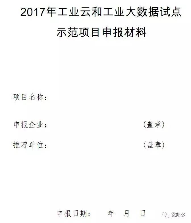 附件:1. 工业云和工业大数据试点示范项目推荐表
