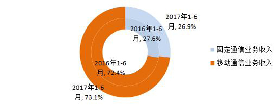 图2 2017年1-6月电信业务收入结构占比情况(固定和移动)