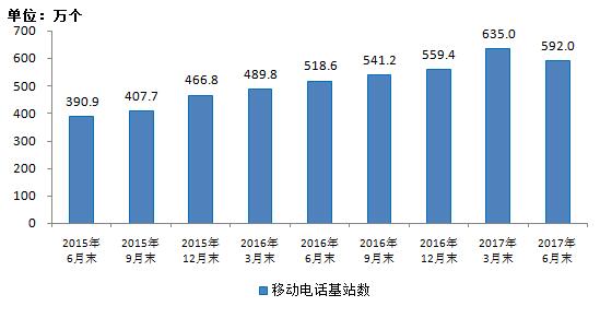 图10 2015-2017年6月移动电话基站数发展情况