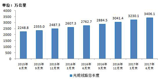 图11 2015-2017年6月光缆线路总长度发展情况
