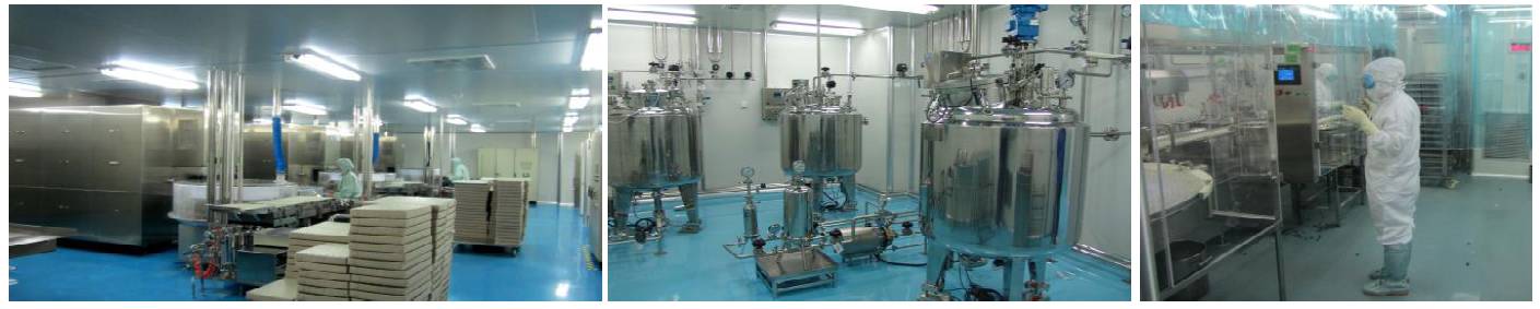 粉针四车间:由2条药液配制过滤系统、1条400瓶/每分钟洗烘灌联动生产线,2台45平方米(总冻干面积90m2)、2台轧盖机为核心设备组成的冻干粉针剂生产线,该冻干粉针剂生产车间年生产能力0.6亿瓶,已于2016年9月28日取得国家食品药品监督管理局颁发的药品GMP证书。
