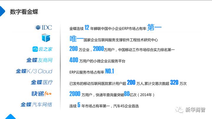 IDC权威数据显示,金蝶连续12年稳居中国中小企业ERP市场占有率第一名