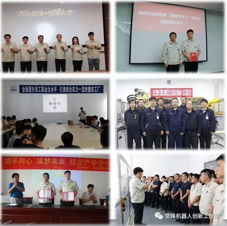 人才培养:“常锋机器人创新工作室”充分利用设备资源,整合机器人相关技术骨干,定期开展机器人操作及维修培训。工作室与多个部门建立人才培养战略合作协议,共同进行相关知识学习,机器人人才储备等活动。工作室积极推动员工参与国家机器人技能竞赛及创新大赛,并举办公司内部机器人技能竞赛,进行人才选拔。