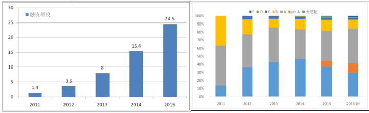 据Gartner2015年统计报告显示,在全球范围内共有75%以上的公司计划在未来两年内投资或计划投资大数据领域。在国内,投资者基于对大数据市场前景的看好,投资热度不断提高。国内投融资金额持续增加,2015年在大数据领域投融资金额达到24.5亿美元,总计超过120起;而2016年仅上半年就超过80起融资。其中投资阶段也由天使轮及A轮向B轮及之后发展,公司商业模式由初期摸索逐渐成型。在下一阶段,有望实现大数据商业模式的进一步落地,大数据产业爆发在即。