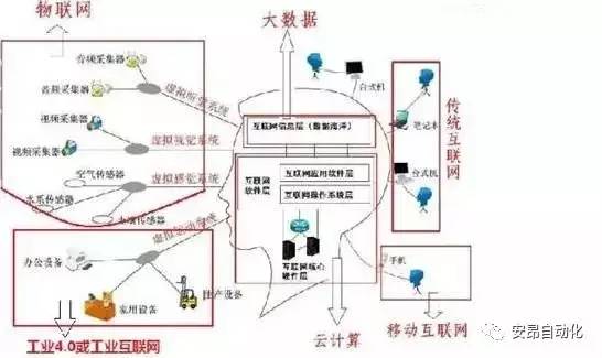 工业4.0或工业互联网本质上是互联网运动神经系统的萌芽,互联网中枢神经系统也就是云计算中的软件系统控制工业企业的生产设备,家庭的家用设备,办公室的办公设备,通过智能化,3D打印,无线传感等技术使的机械设备成为互联网大脑改造世界的工具。同时 这些智能制造和智能设备也源源不断向互联网大脑反馈大数据数,供互联网中枢神经系统决策使用。