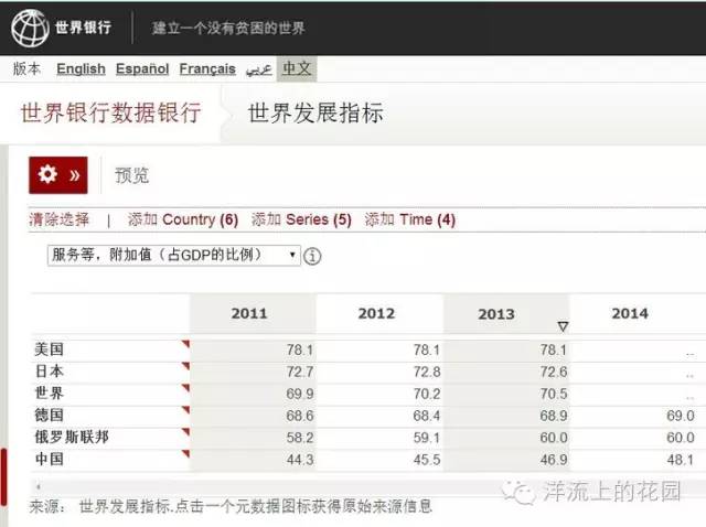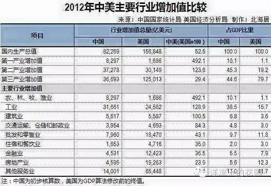 上图中,以中美两国为例,中国制造业占GDP的36.9%,美国仅占12.4%且78.1%的比重都是服务业,美国人一直忧心忡忡的制造业流失,产业空心化,过于依赖金融服务业的问题仍未得到缓解。