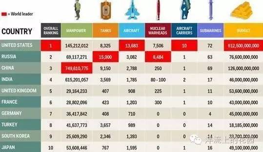 今年公布的全球军力指数的全球战力排名(GFP)又出炉了,这一衡量全球主要国家军力的重要数据,多年来前几名都雷打不动——美国、俄罗斯和中国继续在世界大国军力中稳居前三。