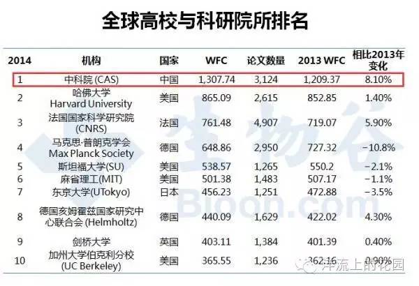 我们用国际公认的衡量一国科技实力最重要的WFC指数(自然指数)来说话。