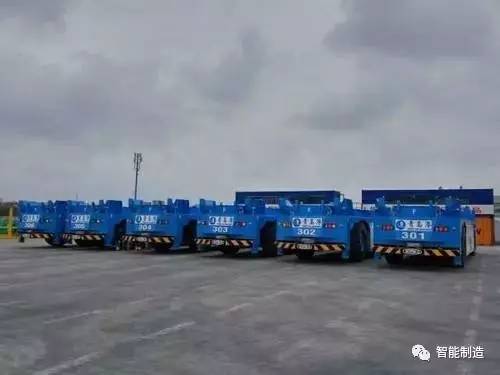 振华重工设计制造的青岛港自动化码头。图为AVG—自动化引导小车,由小车运载集装箱。