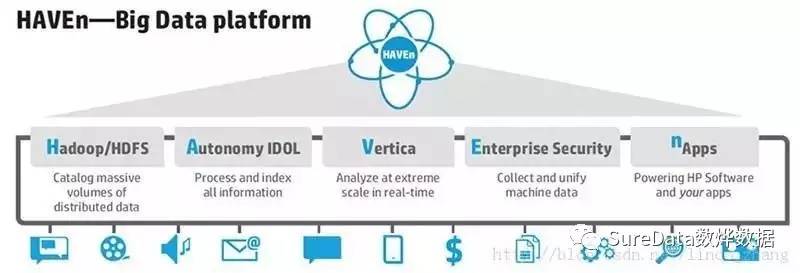 另外一家亟待通过云和大数据战略而复苏的巨头公司HP也推出了自己的产品:HAVEn,一个可以自由扩展伸缩的大数据解决方案。这个解决方案由HP Autonomy、HP Vertica、HP ArcSight 和惠普运营管理(HP OperationsManagement)四大技术组成。还支持Hadoop这样通用的技术。HAVEn不是一个软件平台,而是一个生态环境。四大组成部分满足不同的应用场景需要,Autonomy解决音视频识别的重要解决方案;Vertica解决数据处理的速度和效率的方案;ArcSight解决机器的记录信息处理,帮助企业获得更高安全级别的管理;运营管理解决的不仅仅是外部数据的处理,而是包括了IT基础设施产生的数据。